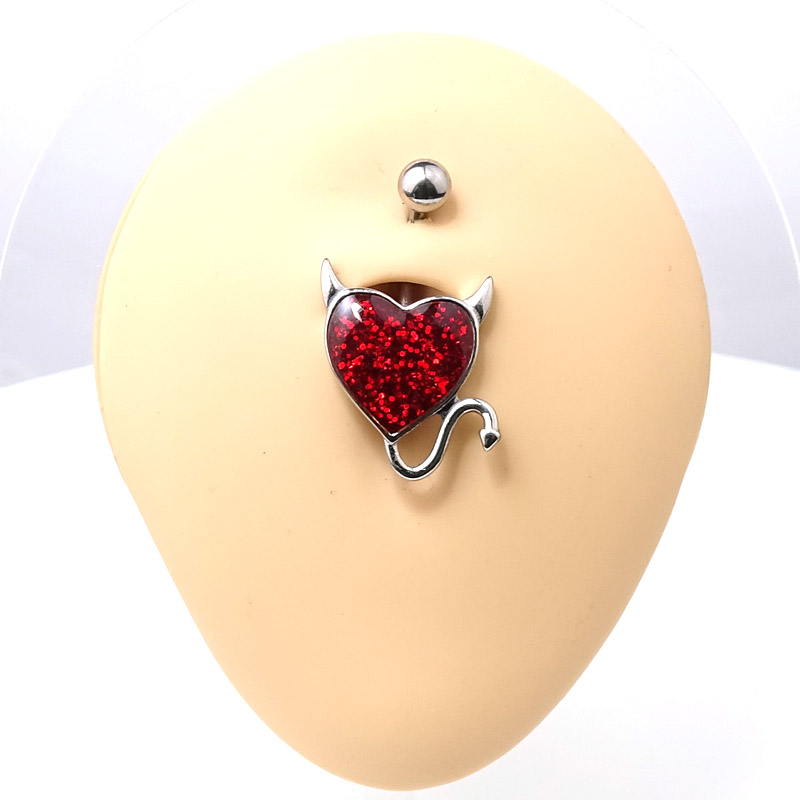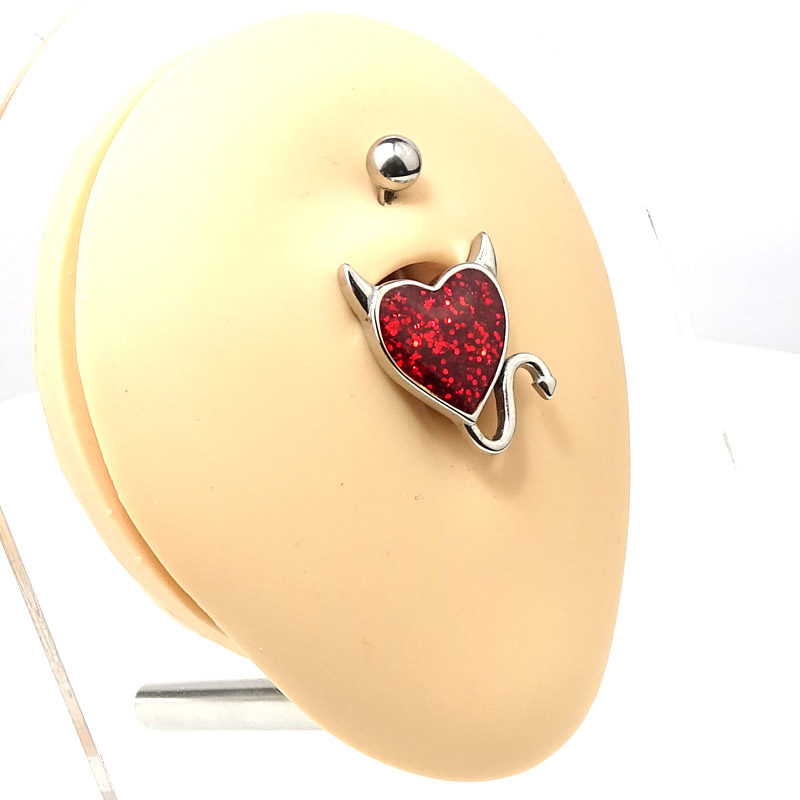Glitter - Herz - Bauchnabelstecker. Die Hauptfarbe ist Feuer-Rot.