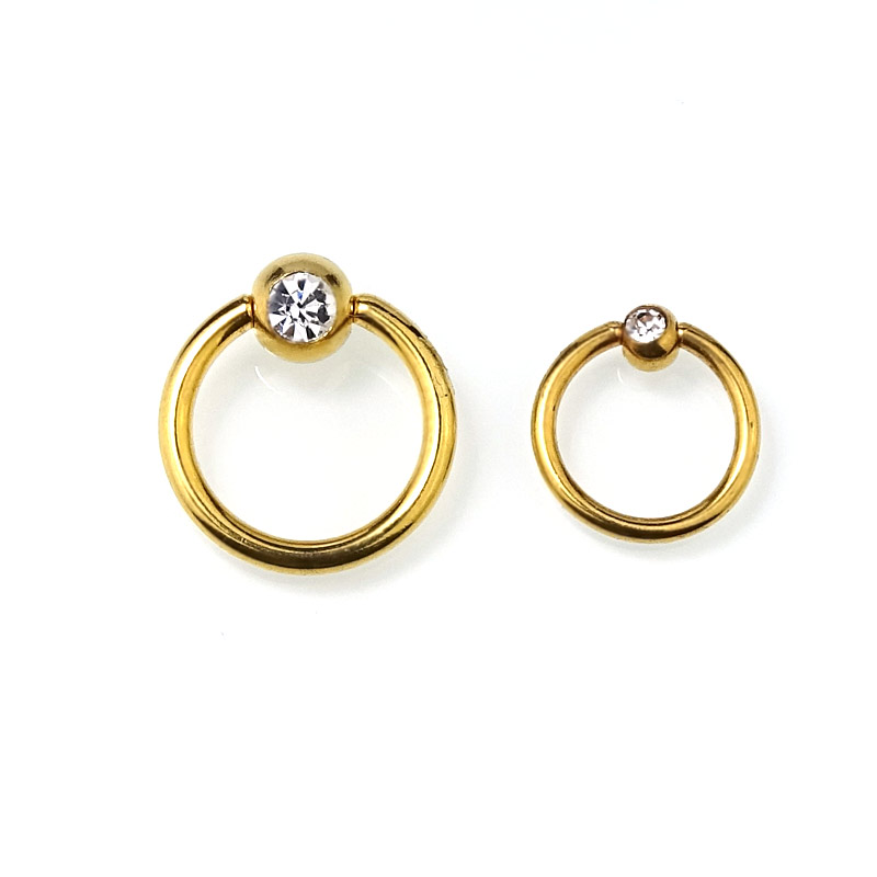 Mobile Preview: BCR Goldstyle - goldfarbener Piercingring mit Kristall