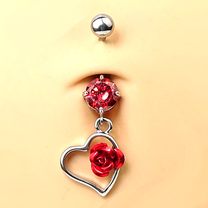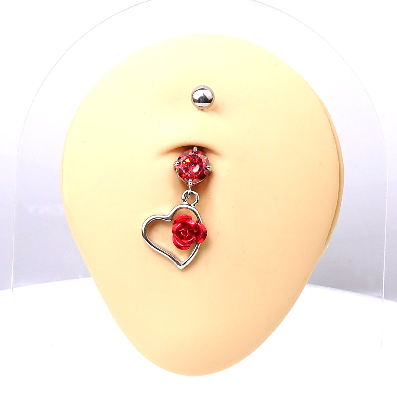 Steel Bauchnabel Banana mit Rosen Brass Design im Herz
