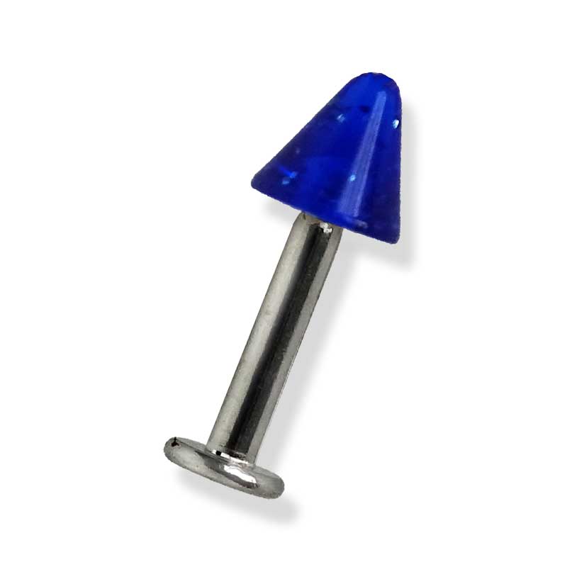 Steel Labret Stud mit Acrylkegel dunkelblau/glitter 1,6 mm x 8 mm
