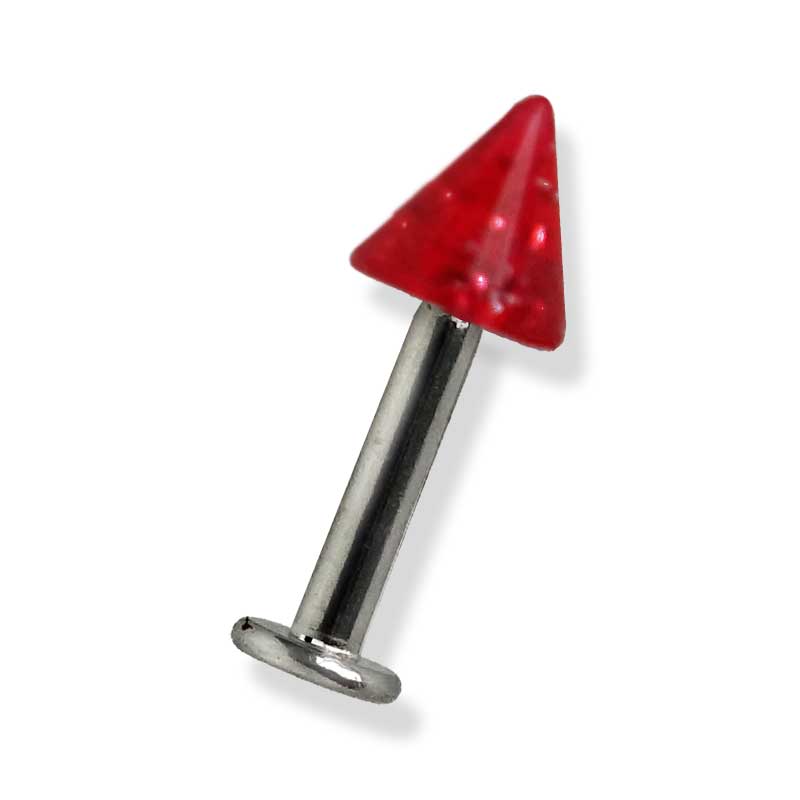 Steel Labret Stud mit Acrylkegel rot/glitter 1,6 mm x 8 mm