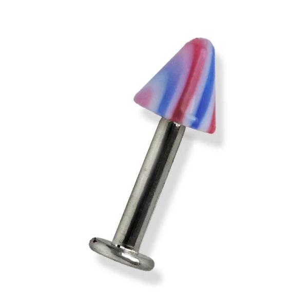 Steel Labret Stud mit Acrylkegel tricolor 1,6 mm x 8 mm