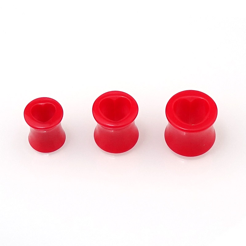 Acryl-Flesh-Tunnel für gedehnte Ohrlöcher. Der Durchbruch ist nicht wie bei den üblichen Tunneln einfach rund, sondern herzförmig. Es sind verschiedene Größen auf Lager (8 mm, 10 mm und 12 mm). Diese können Sie der obigen Auswahl entnehmen. Länge: ca. 12 mm