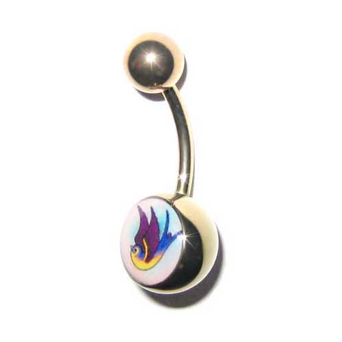 Bauchnabelpiercing mit Bildmotiv "Schwalbe" Material Spezifikation: Zirconium-Nitrid-beschichtetes Titan Grad23