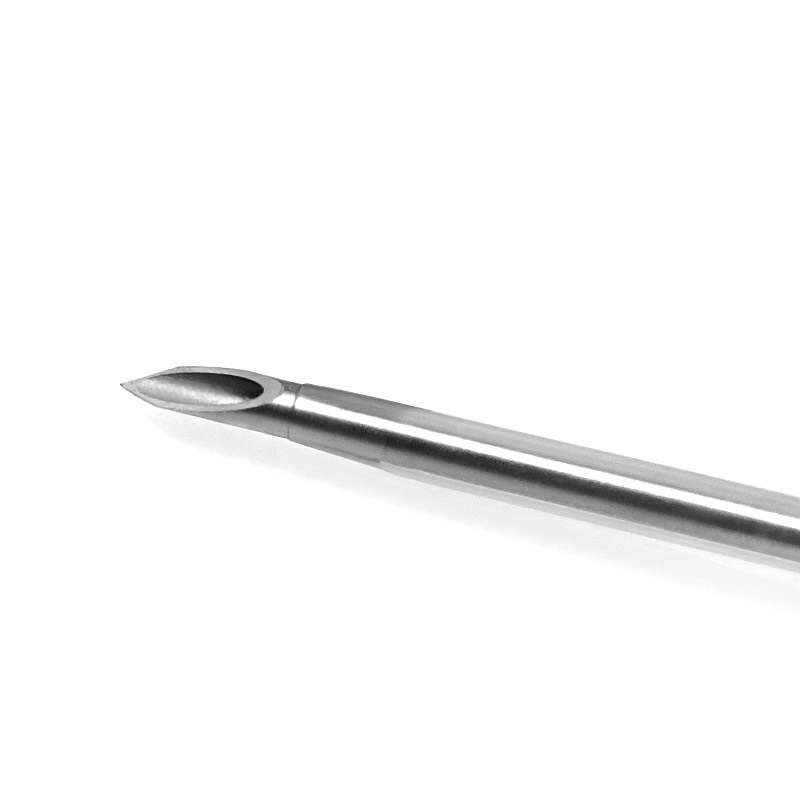 Von Braun Medical Deutschland hergestellte sterile Hohlnadel (Braunüle). Dreifach abgeschrägt und rasiermesserscharf.