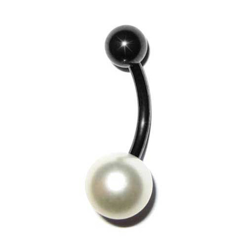 Material Spezifikation: die kleine Kugel (Verschlußkugel oben), sowie der gebogene Stab bestehen aus PVD beschichtetem Titan Grad23 - die große Kugel ist eine synth. Perle mit Titan-Gewindeeinsatz.