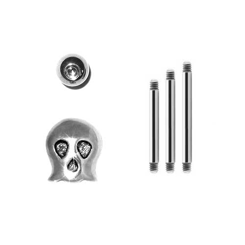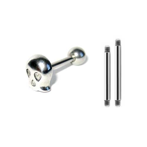 Piercingstecker für Zungenpiercings (Zungenstecker) - bestehend aus: - 1 Aufsatz (Motiv "Ghost") - 3 Stäbe in den Längen 12, 14 und 16 mm - 1 Verschlußkugel 5 mm