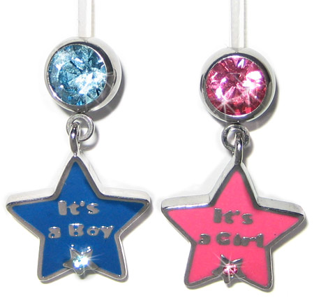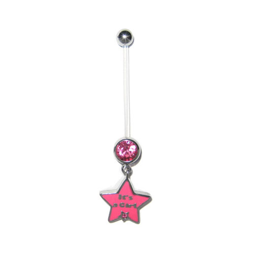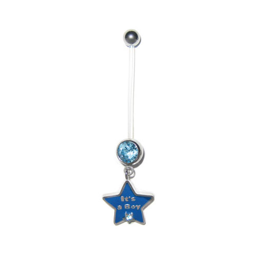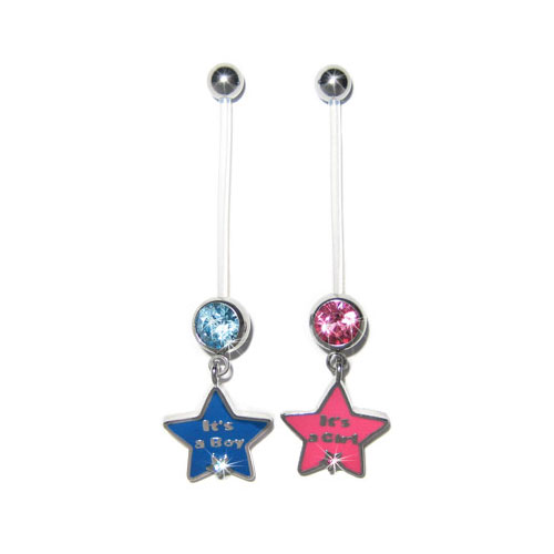 Der Anhänger mit dem Stern ist beschriftet. Die blaue Ausführung mit "It's a Boy" und die pinke mit "It's a Girl". Dieser Piercingstecker ist der ideale Schmuck für den Bauchnabel bei einer Schwangerschaft. Die nutzbare Länge des flexiblen PTFE-Stabes beträgt ca. 26 mm. Der Piercingstecker kann beliebig mit einer Schere oder Messer gekürzt werden. Durch das anschließende Aufschrauben der Verschlußkugel schneidet sich das Gewinde erneut selbst. Das ermöglicht diesen Bauchnabelschmuck auch noch nach der Schwangerschaft zu tragen.
