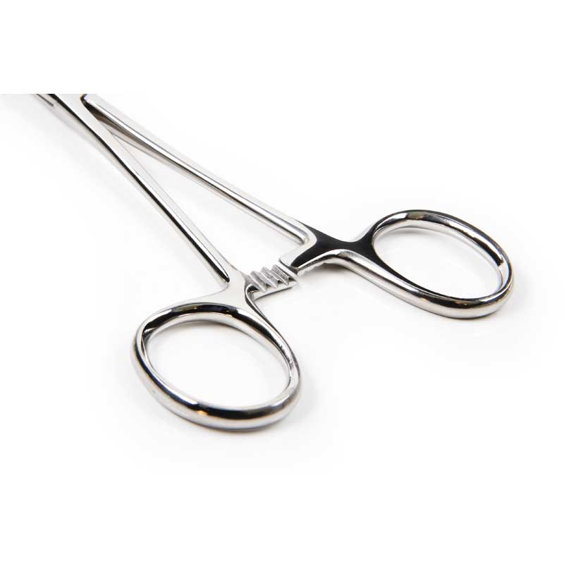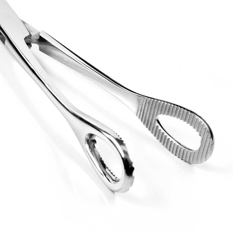 Diese Gazeklemme, die auch als Försterpinzette bekannt ist, hat eine ovale Klemmenöffnung von 14 x 8 mm und eignet sich besonders für Zungen und Nabelpiercings. Die Innenseiten der Klemmflächen sind gerippt, um größtmöglichen Halt zu erreichen. Dieses Produkt wird nach hohen klinischen Standards hergestellt.